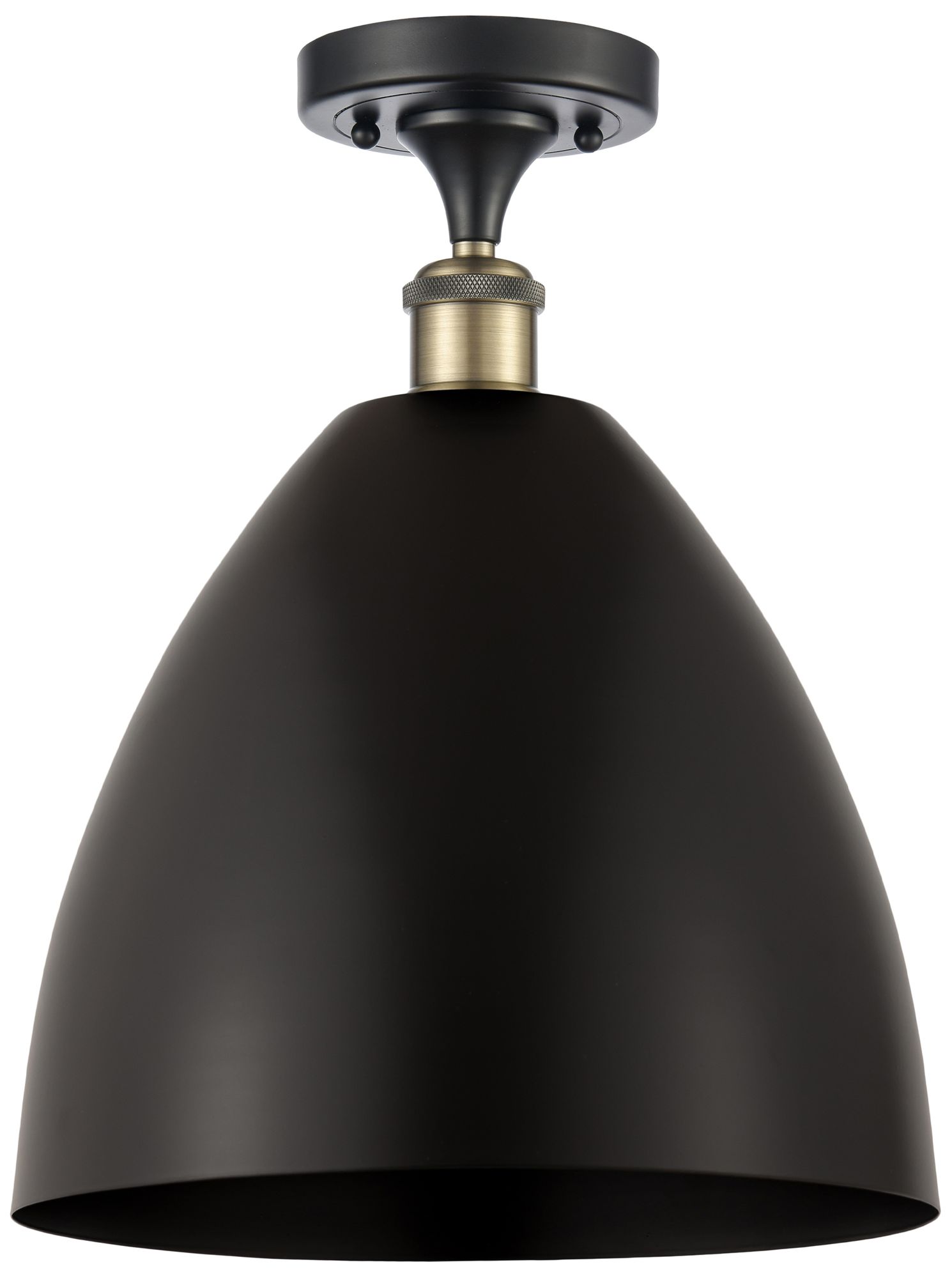 Metal Bristol 12"W Black Brass LED Semi.Flush Mount With Black Shade