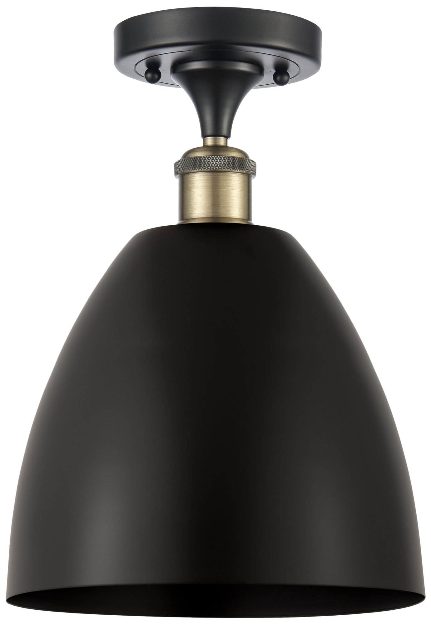 Metal Bristol 9"W Black Antique Brass Semi.Flush Mount With Black Shad