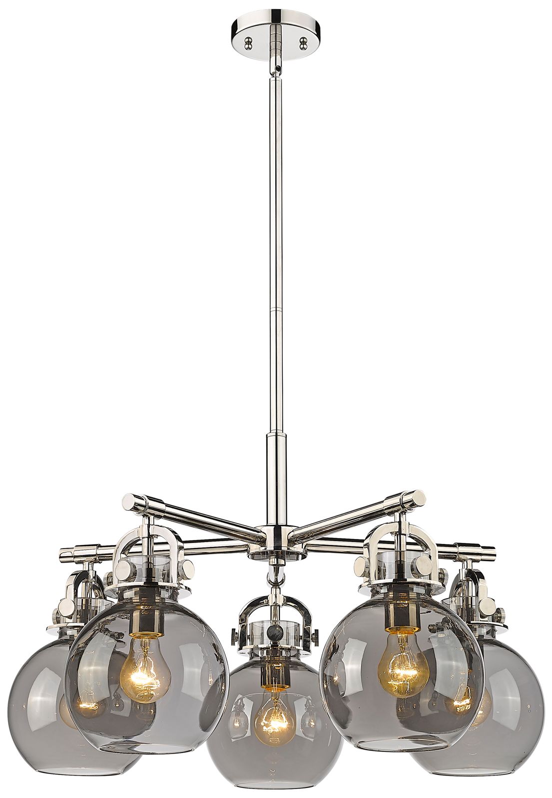 Newton Sphere 26"W 5 Light Polished Nickel Stem Chandelier w/ Smoke Sh