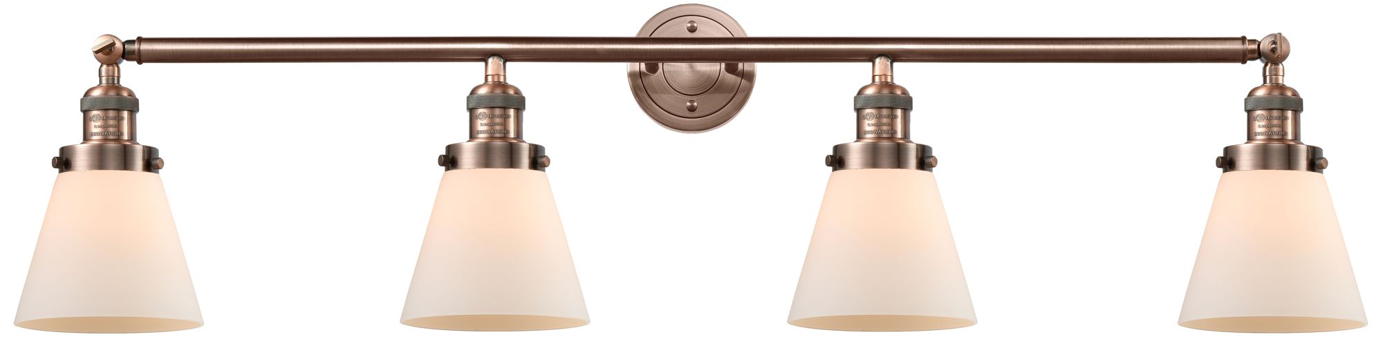 Cone 4 Light 42" Bath Light - Antique Copper - Matte White Shade