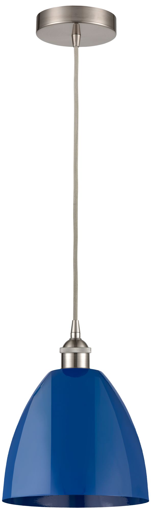 Plymouth Dome 9"W Brushed Satin Nickel Corded Mini Pendant w/ Blue Sha