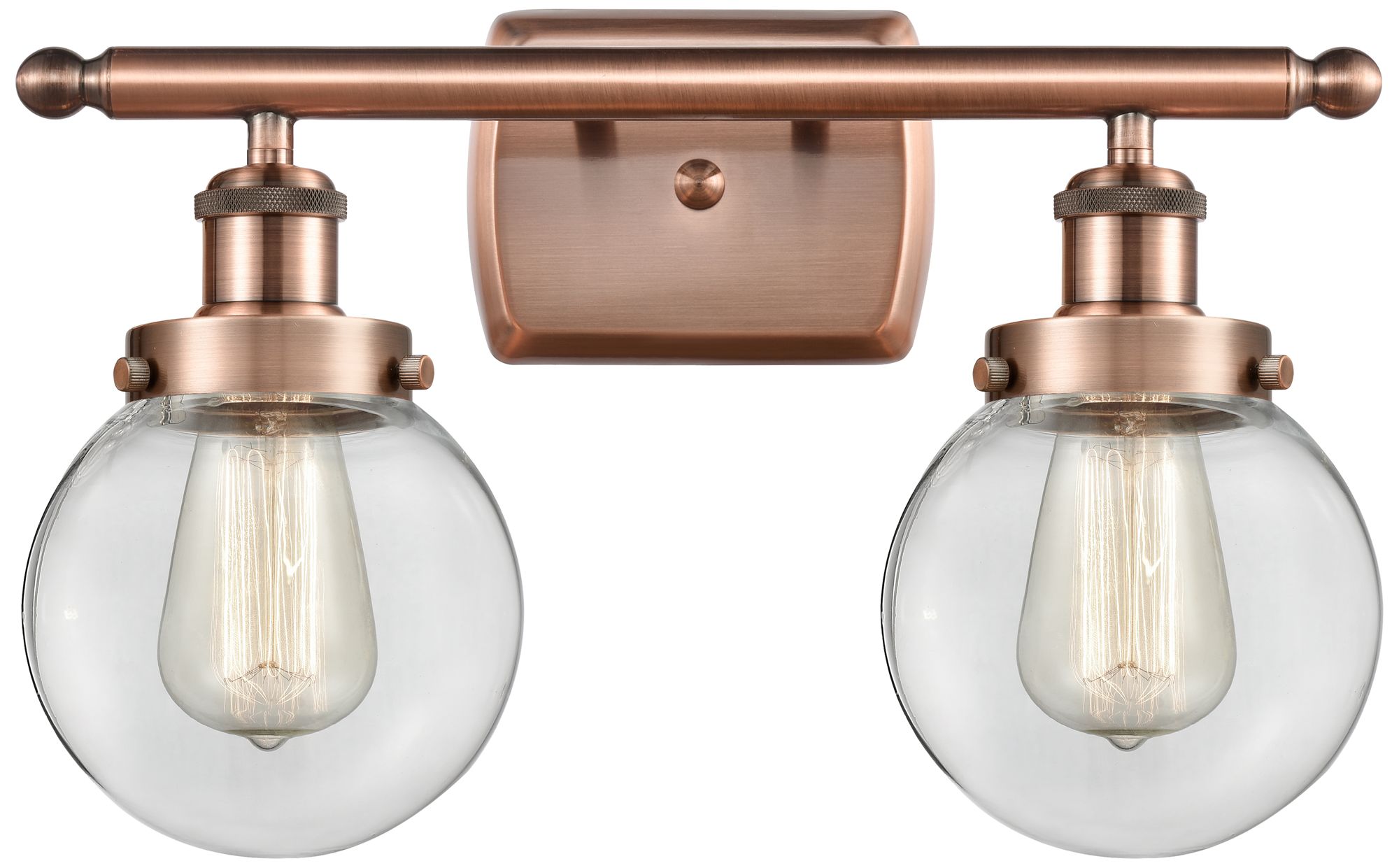 Ballston Urban Beacon 2 Light 16" Bath Light - Antique Copper - Clear