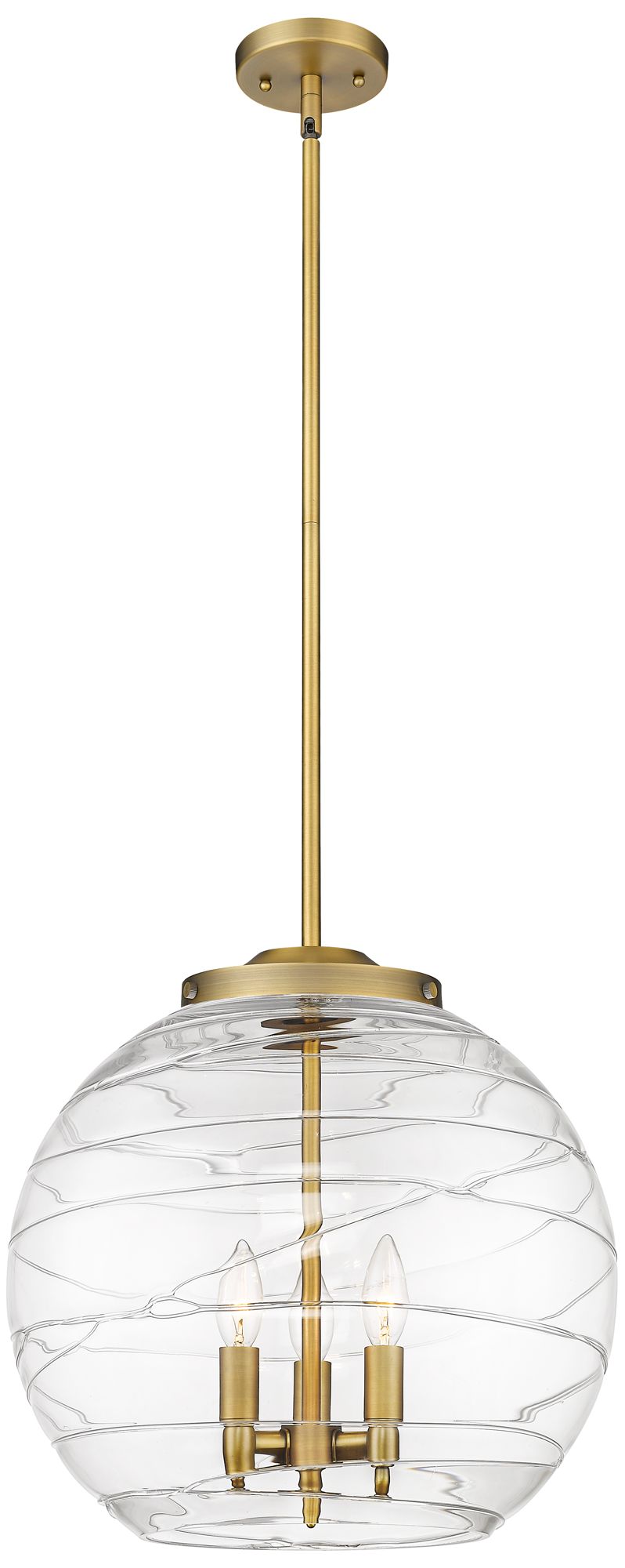 Athens 16" 3-Light Brushed Brass Pendant w/ Clear Deco Swirl Shade