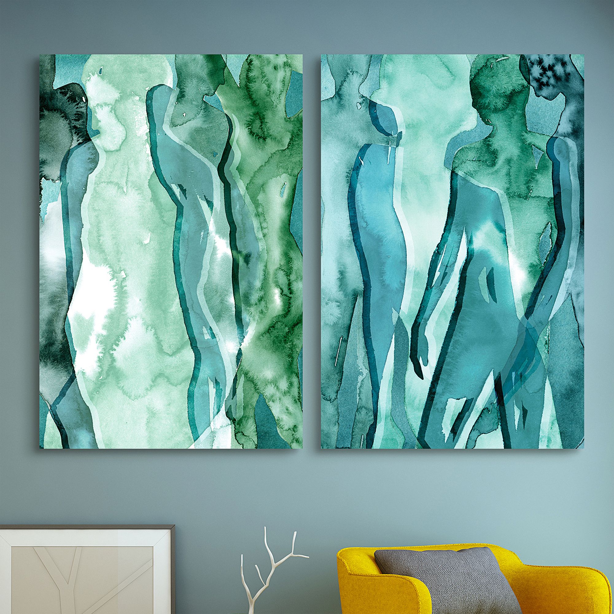 Water Women 64"W Free Floating 2-Piece Glass Wall Art Set