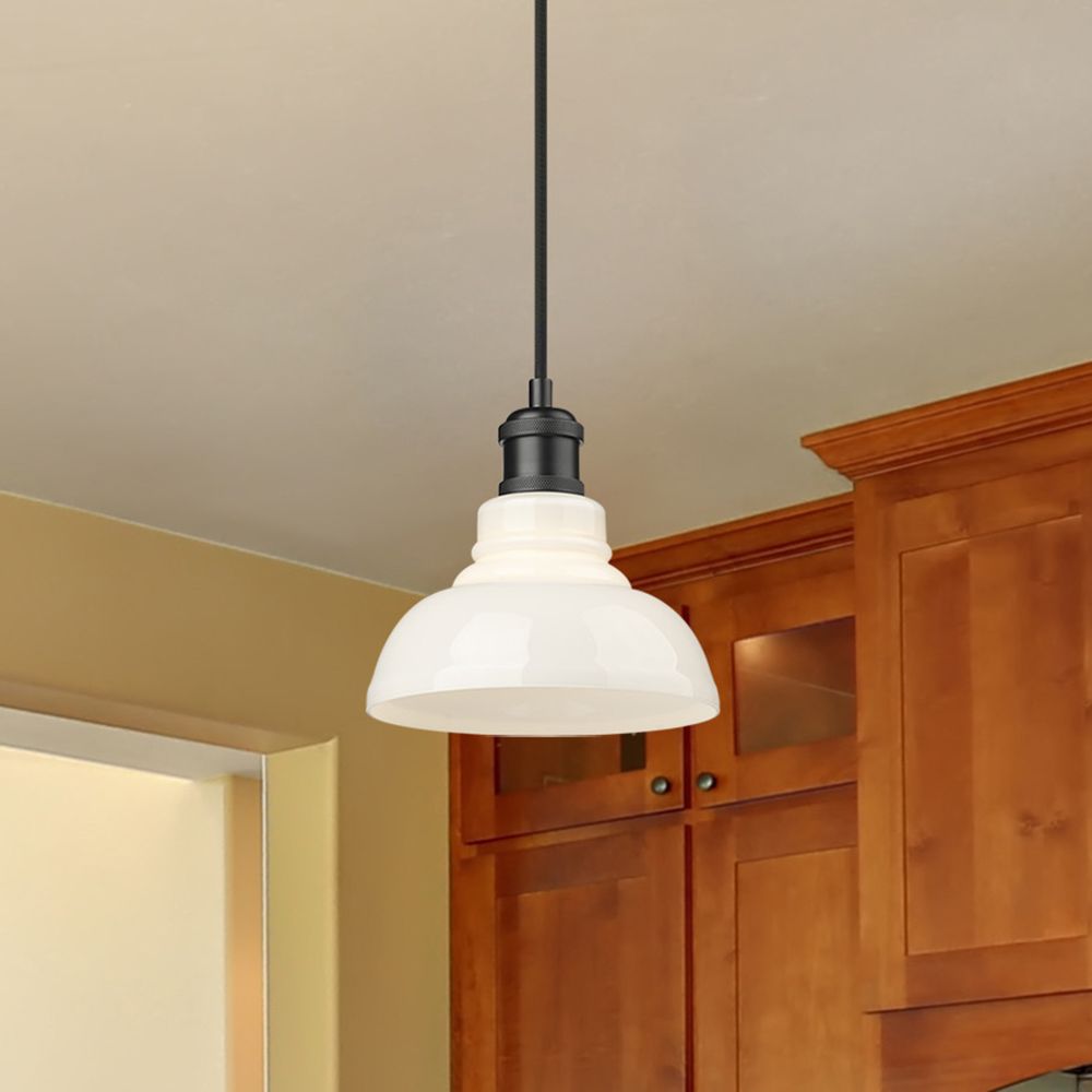 Carver 7 1/2" Wide Mini Pendant in Matte Black with Vintage Milk Glass