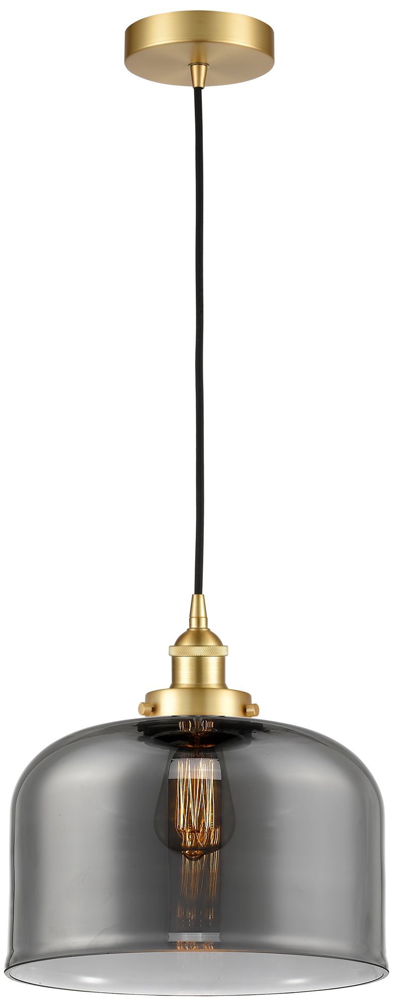 Bell 12" Satin Gold Mini Pendant w/ Plated Smoke Shade