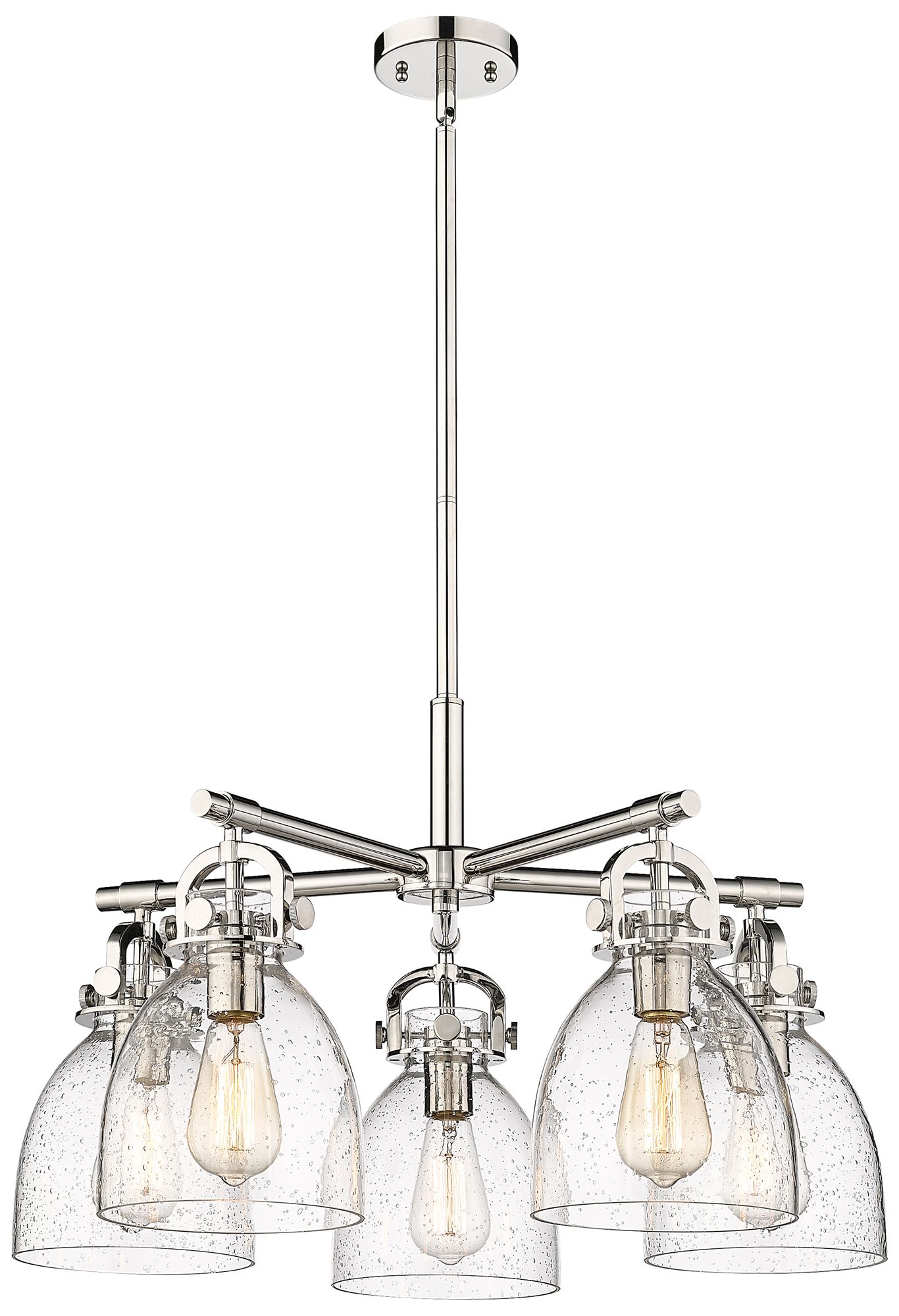 Newton Bell 26"W 5 Light Polished Nickel Stemmed Chandelier w/ Seedy S