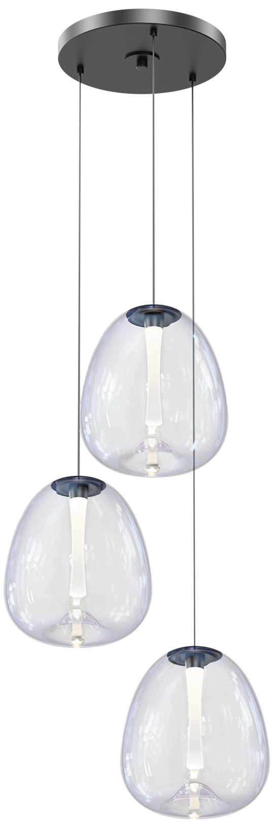 Mela 20"W 3-Light Black LED Pendant w/ Dichroic Glass Shade