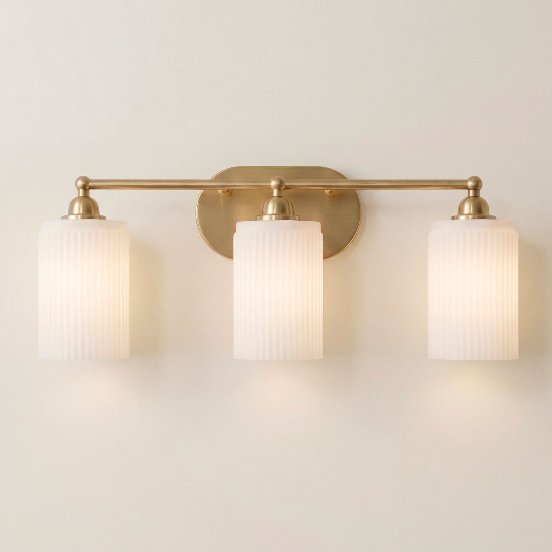 David 22" Wide Soft Gold and Fluted Glass 3-Light Bath Light