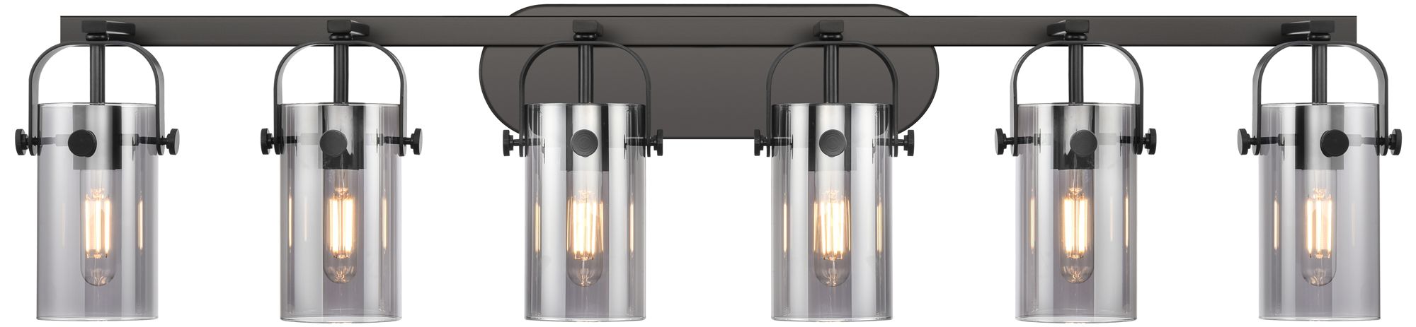 Pilaster II Cylinder 44" Wide 6 Light Matte Black Bath Light w/ Smoke