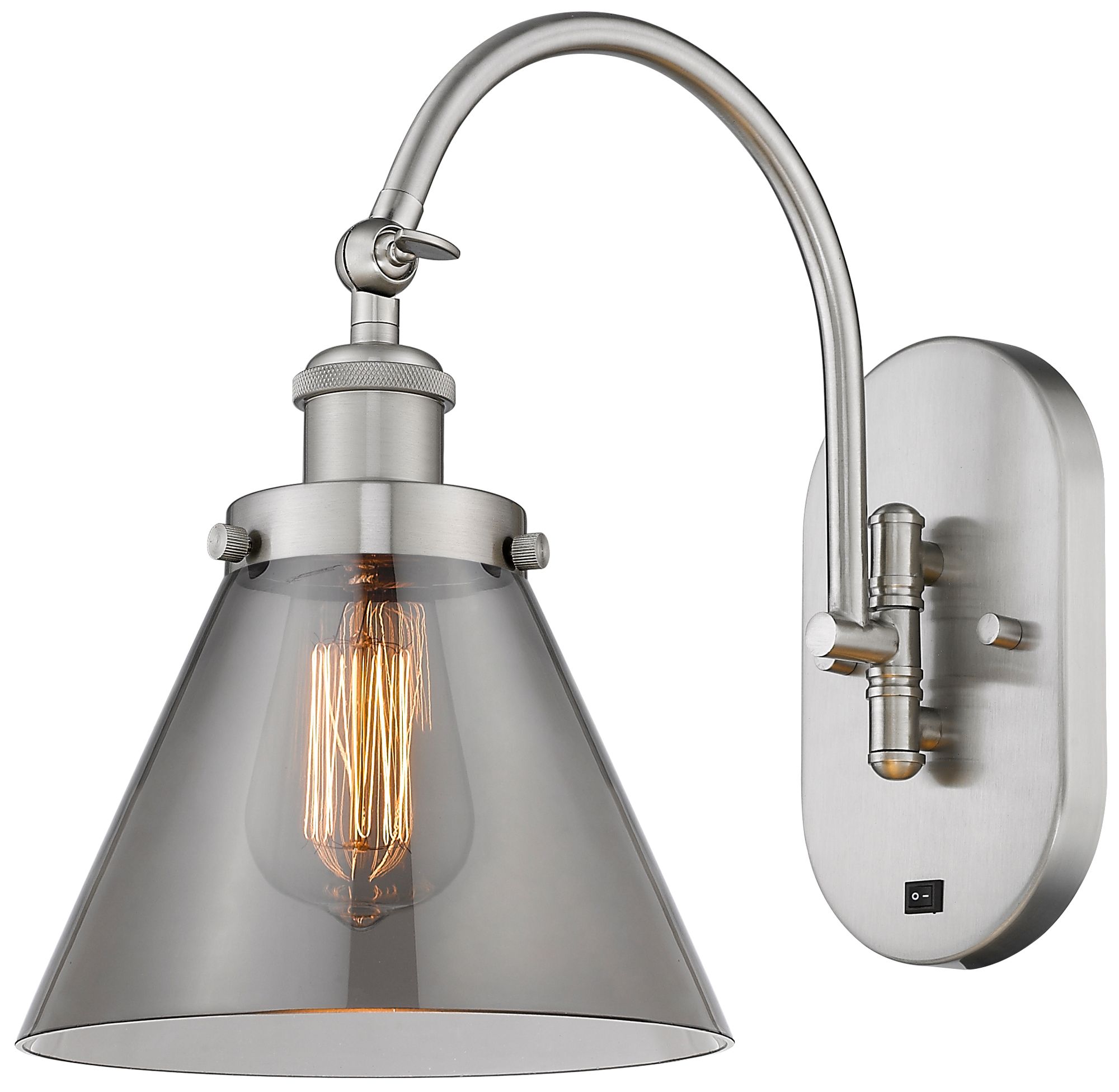 Franklin Restoration Cone 8" LED Sconce - Nickel Finish - Smoke Shade