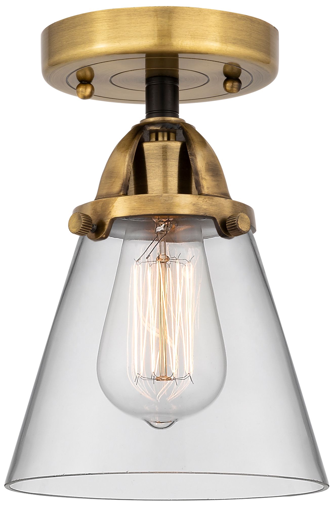 Nouveau 2 Cone 6" LED Semi-Flush Mount - Black Antique Brass - Clear