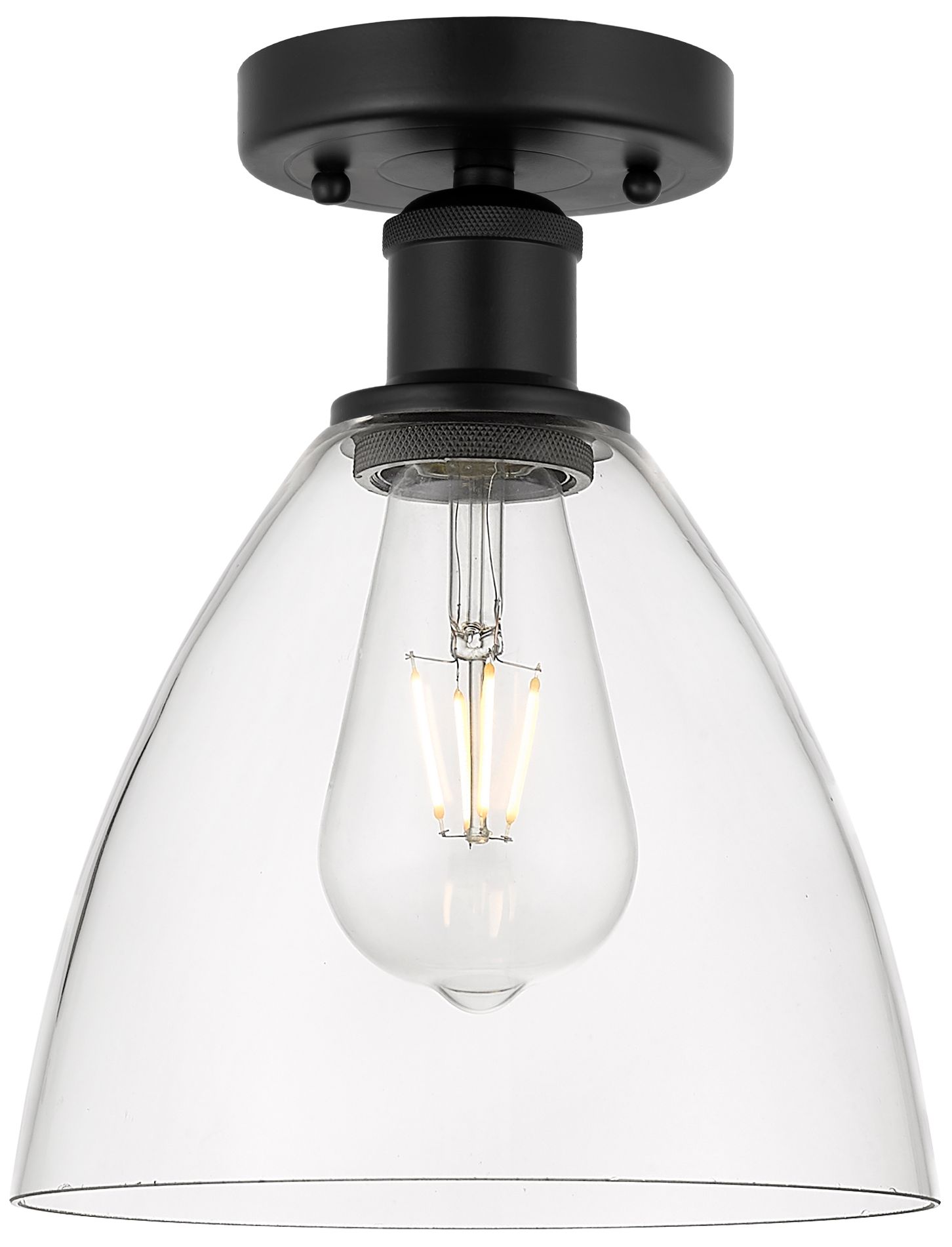 Edison Bristol Glass 8" Semi-Flush Mount - Matte Black - Clear Shade