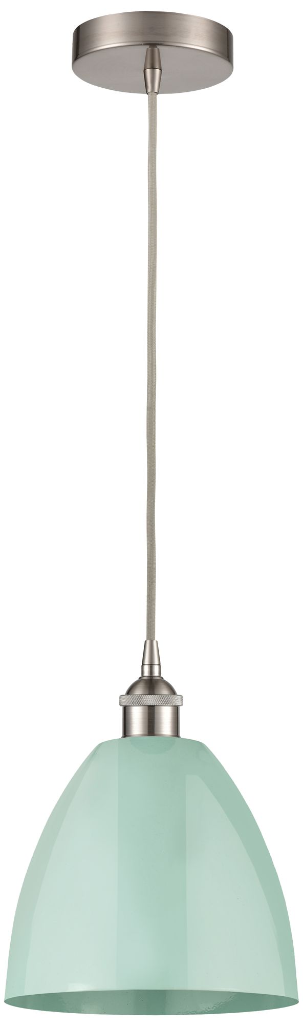 Plymouth Dome 9"W Brushed Satin Nickel Corded Mini Pendant w/ Seafoam