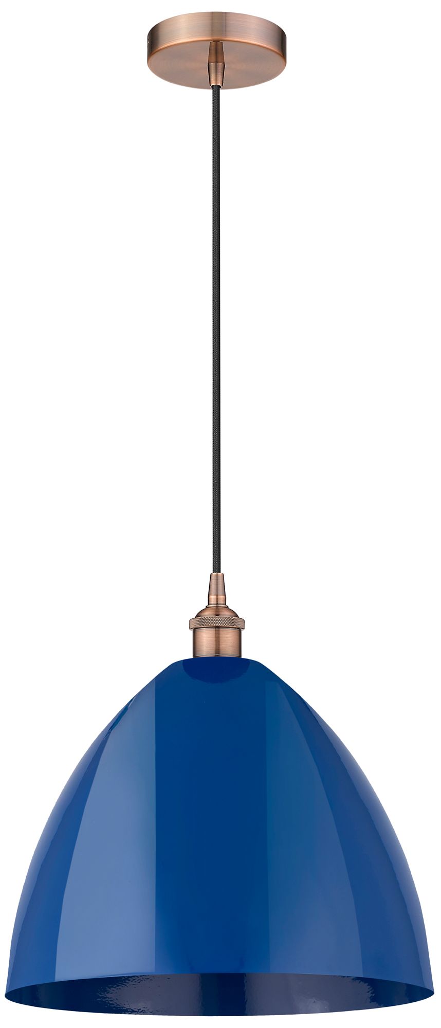 Edison Plymouth Dome 16"W Copper Cord Hung Mini Pendant w/ Blue Shade