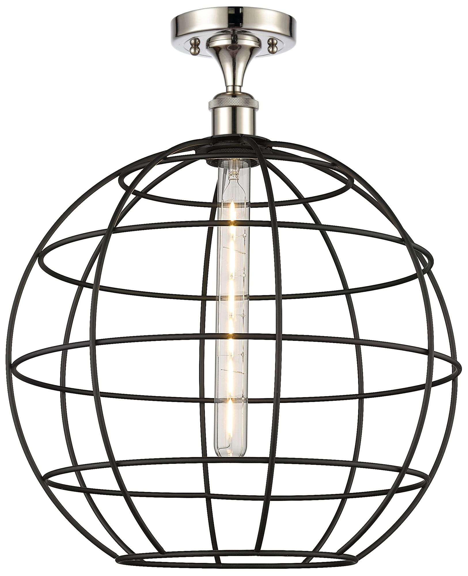 Ballston Lake Placid 16"W Polished Nickel Semi.Flush Mount With Black