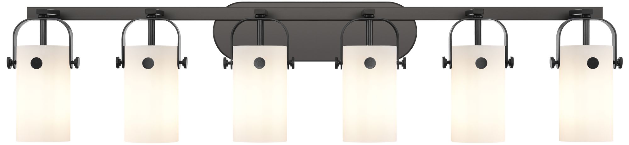 Pilaster II Cylinder 44" Wide 6 Light Matte Black Bath Light w/ White