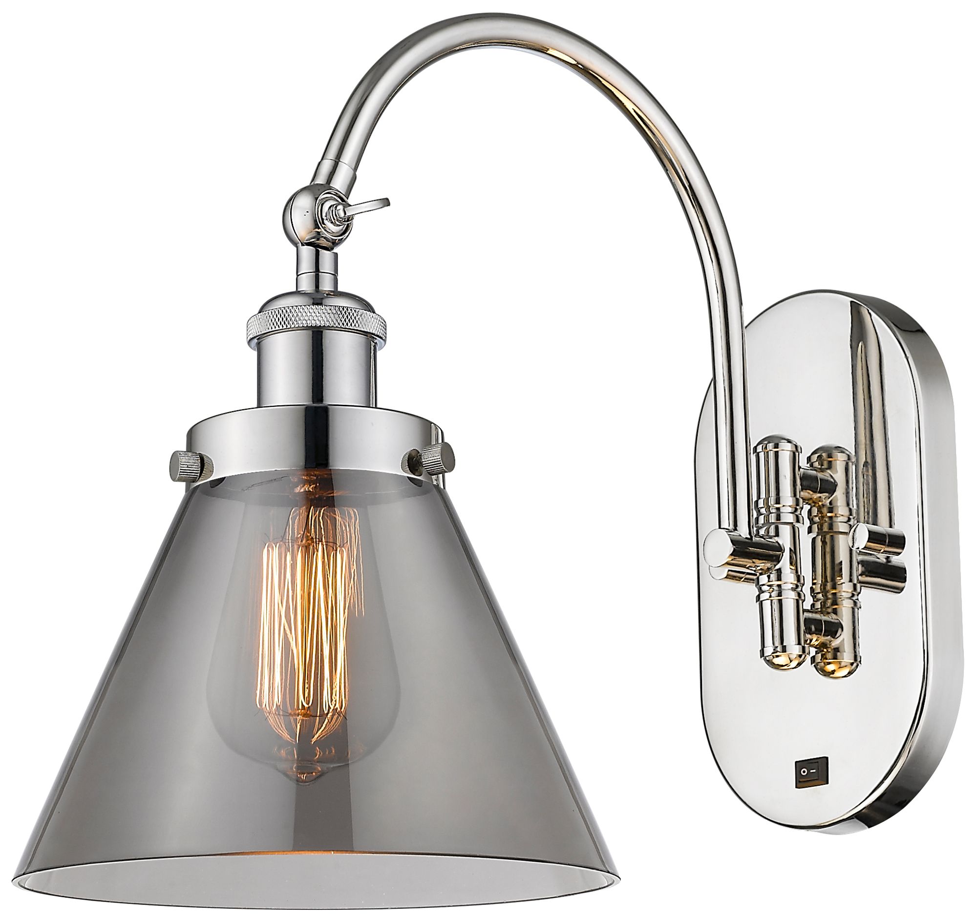 Franklin Restoration Cone 8" LED Sconce - Nickel Finish - Smoke Shade