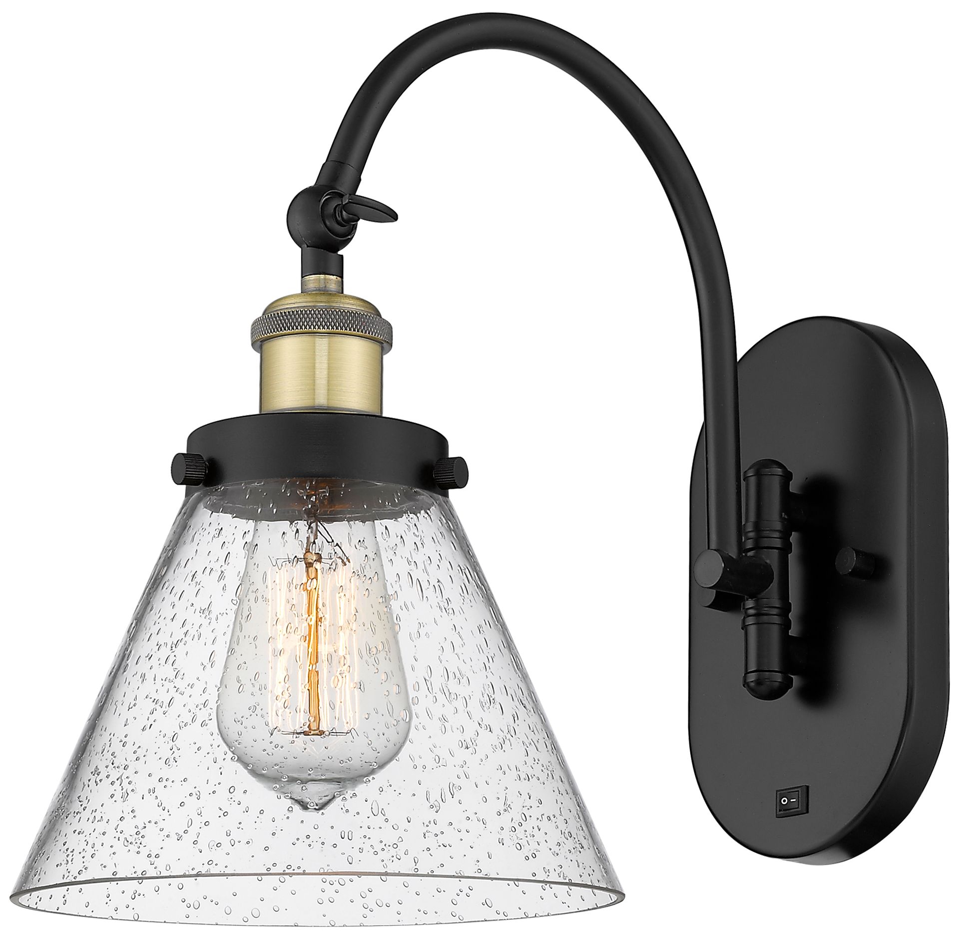 Franklin Restoration Cone 8" Seedy Shade Black Brass Incandescent Scon