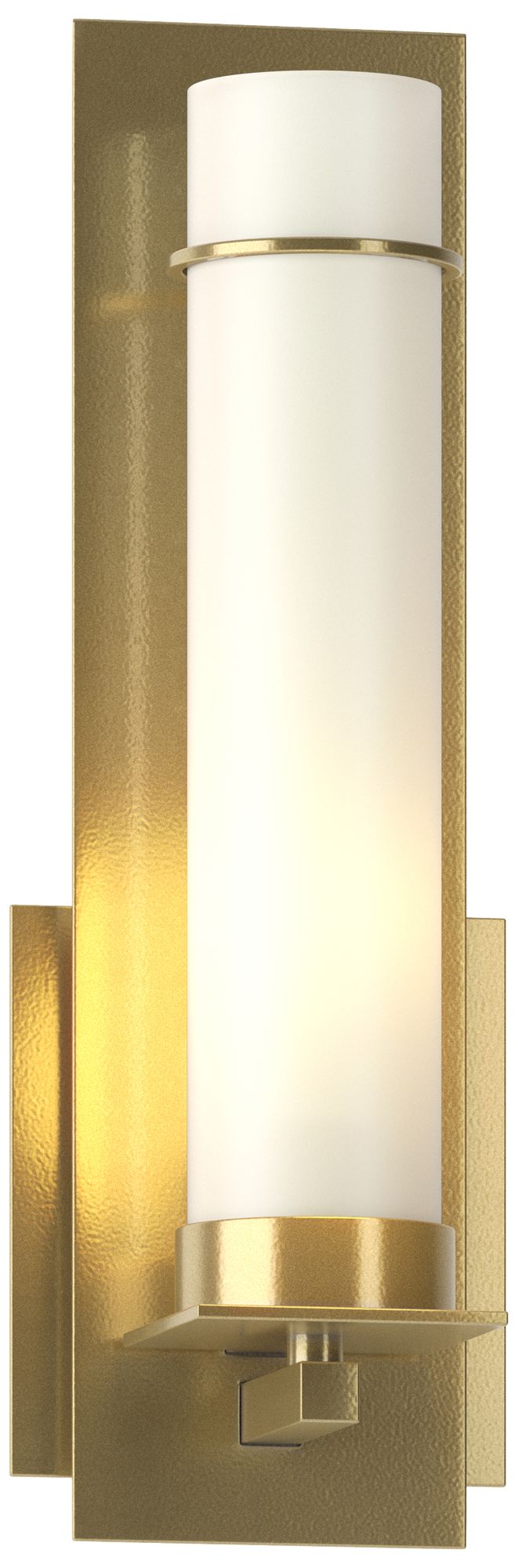 New Town 12.6" High Modern Brass Sconce With Opal Glass Shade