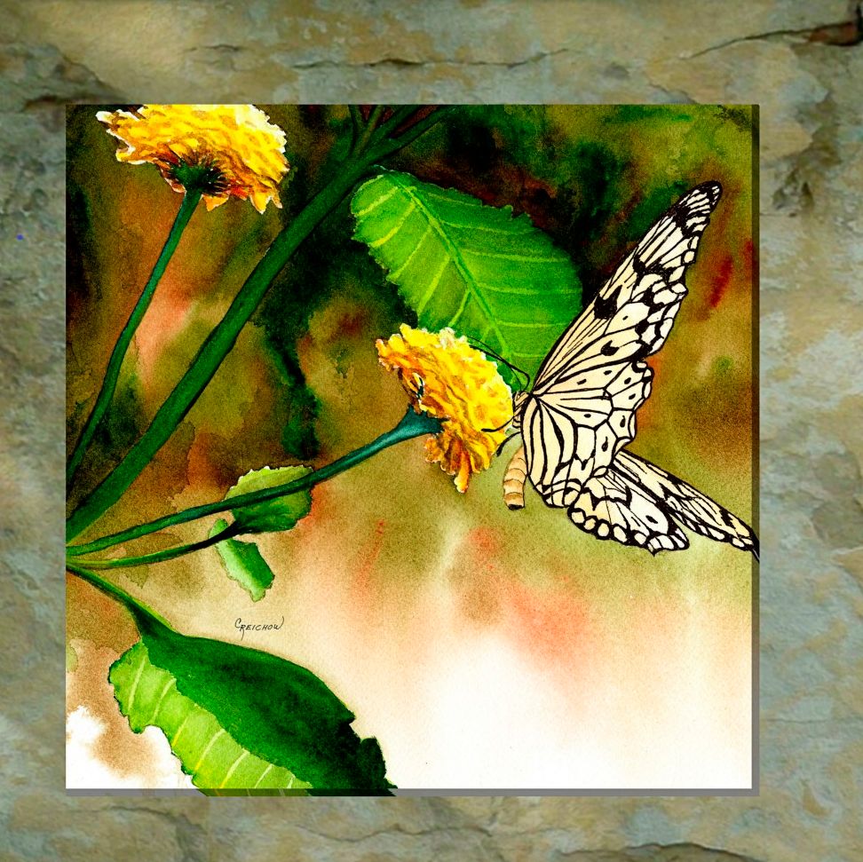 Butterfly Kiss 24" Square Outdoor Canvas Wall Art