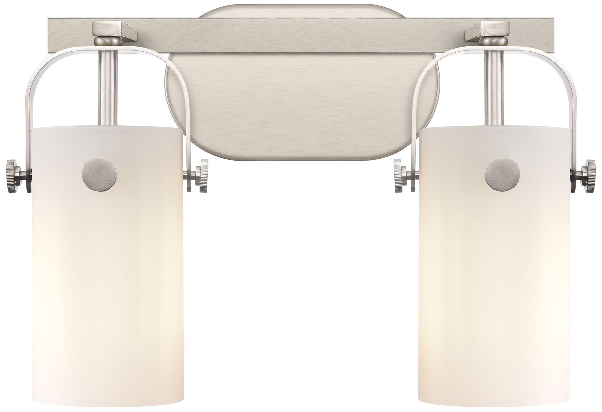 Pilaster II Cylinder 15"W 2 Light Satin Nickel Bath Light w/ White Sha