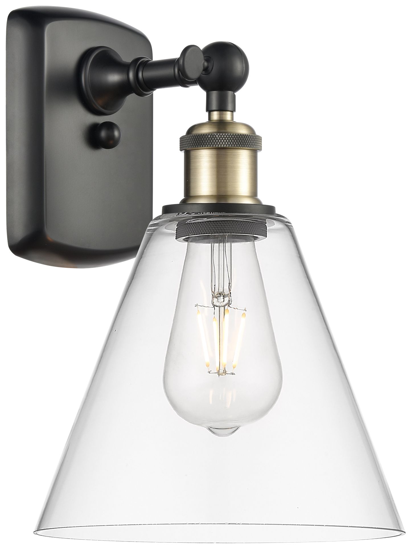Berkshire Glass 8" Incandescent Sconce - Black Brass Finish - Clear Sh