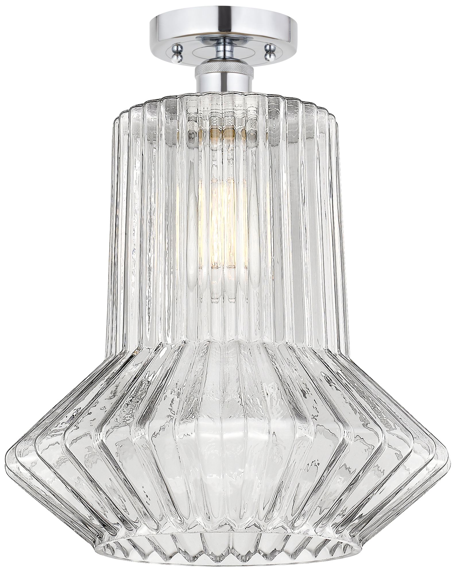 Edison Springwater 12" Chrome Semi Flush Mount w/ Clear Spiral Fluted