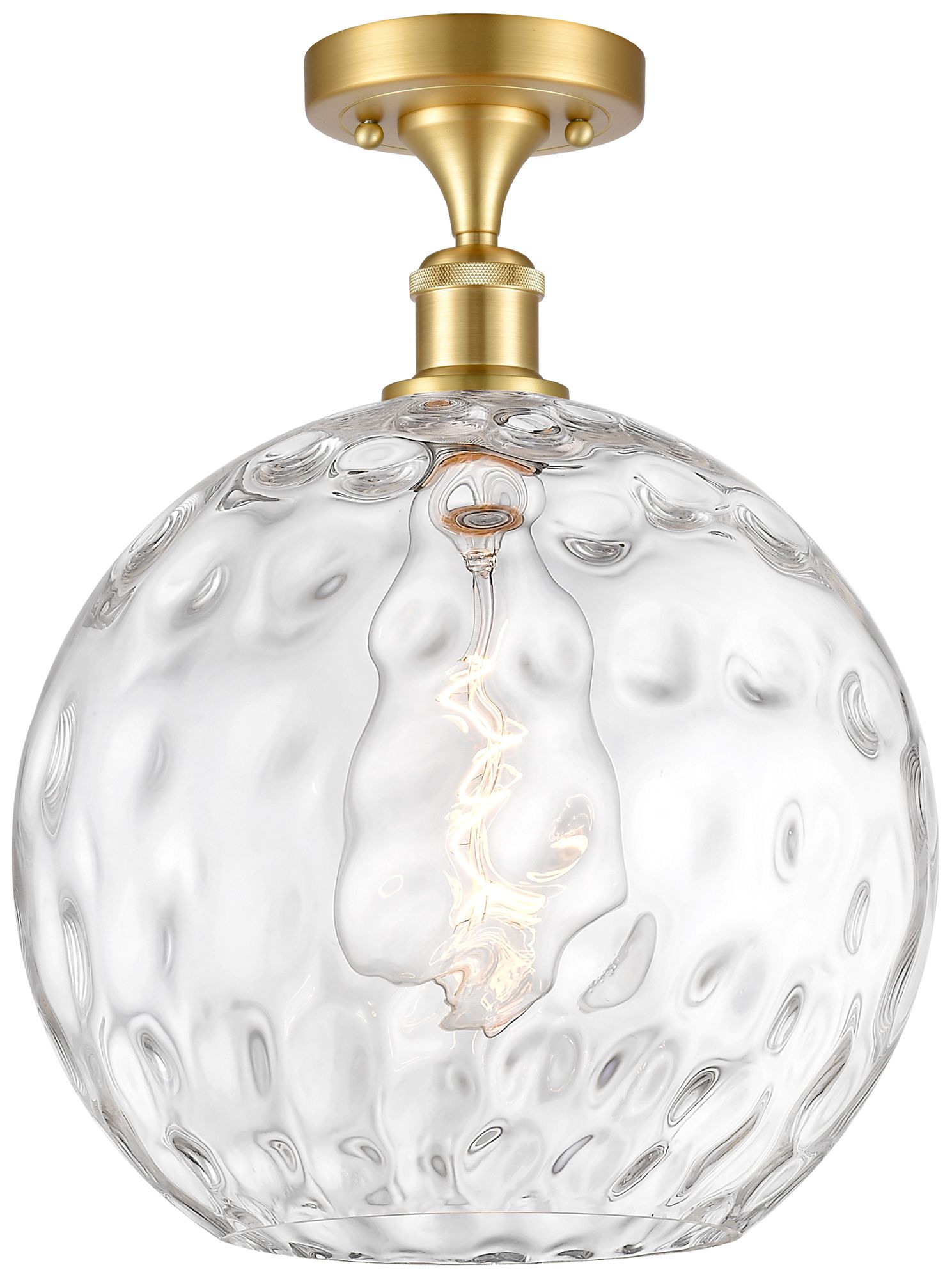 Athens Water Glass 12" Semi-Flush Mount - Satin Gold - Clear Water Gl