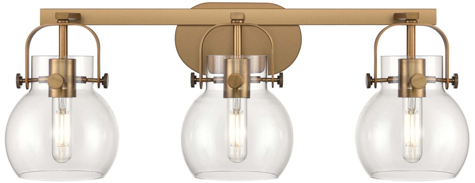 Pilaster II Sphere 26.5"W 3 Light Brushed Brass Bath Light w/ Clear Sh