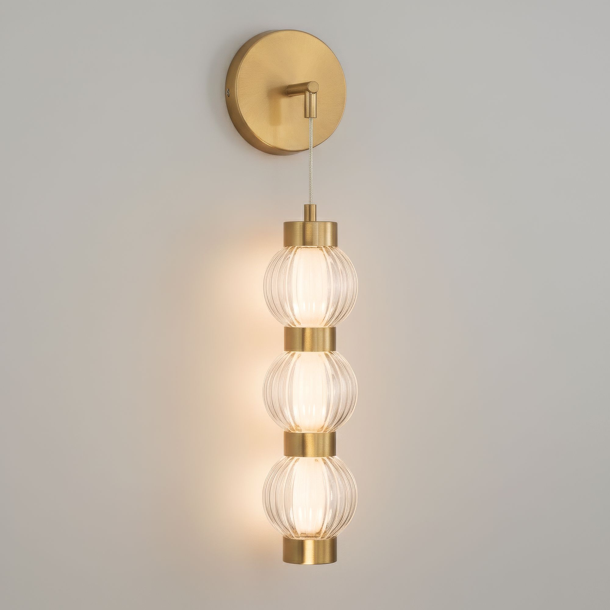 Possini Euro Mastia 22 1/4"H Warm Brass Ribbed Glass LED Wall Sconce