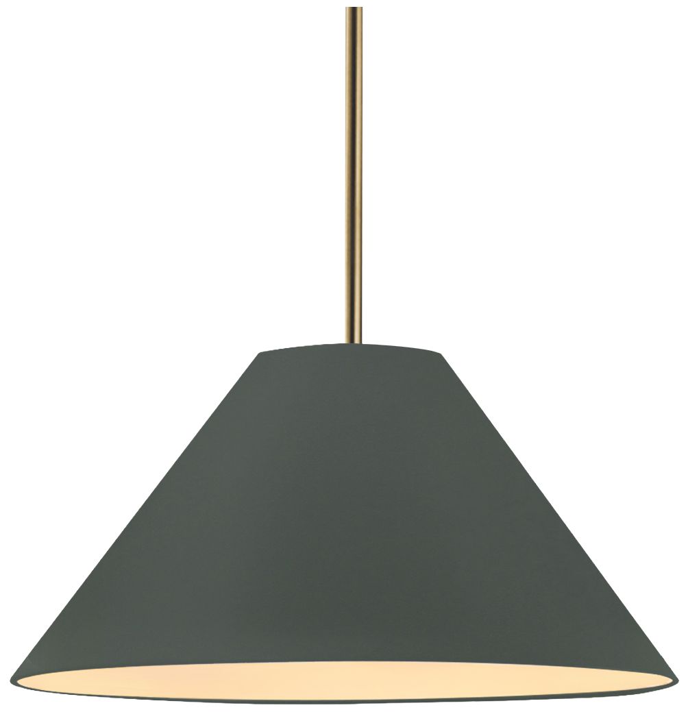 Radiance Avola 15"W Pewter Green, Antique Brass Pendant - White Cord