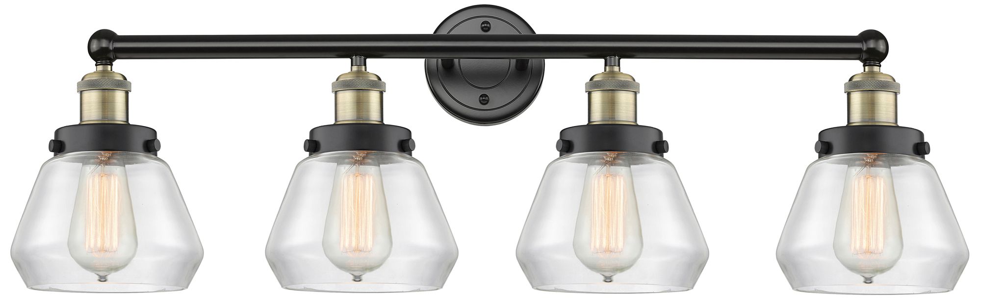 Fulton 33.5" Wide 4 Light Black Brass Bath Vanity Light With Clear Sha