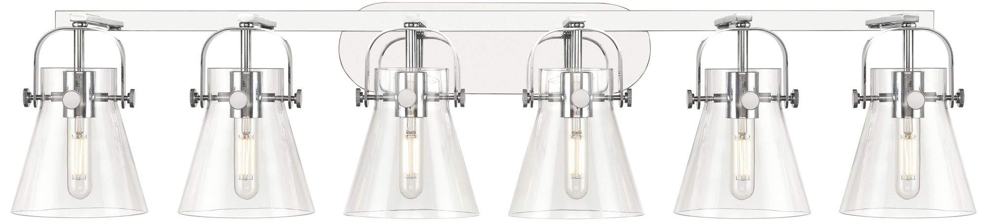 Pilaster II Cone 45.5" Wide 6 Light Chrome Bath Light w/ Clear Shade