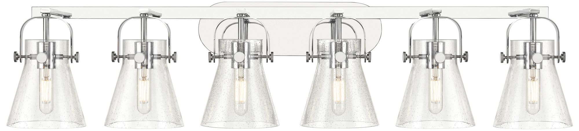 Pilaster II Cone 45.5" Wide 6 Light Chrome Bath Light w/ Seedy Shade