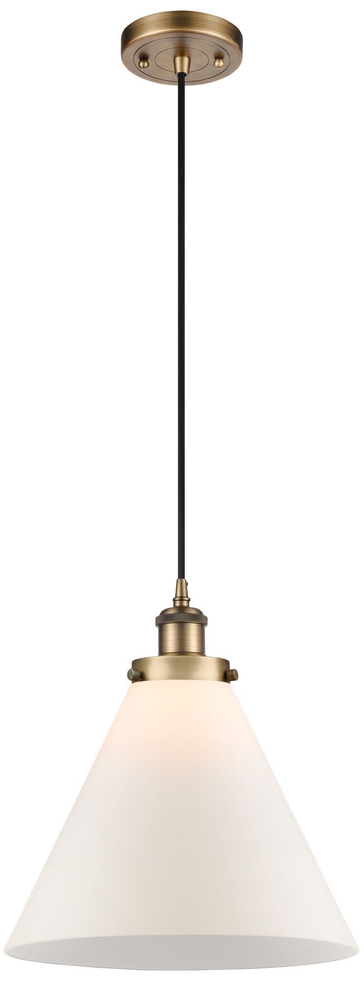 Ballston Urban Cone 12"W Brushed Brass Corded Mini Pendant w/ White Sh