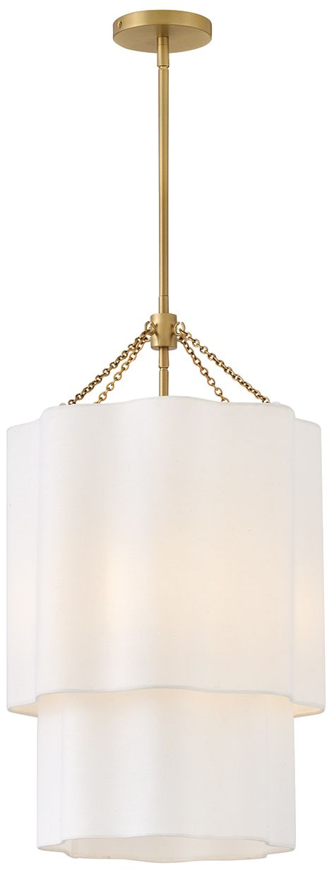 Gwen 16" Wide Lacquered Brass Pendant Light w/ Linen Shade