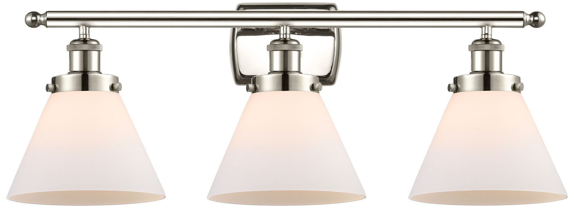 Ballston Urban Cone 28" 3 Light Nickel Bath Light w/ White Shade