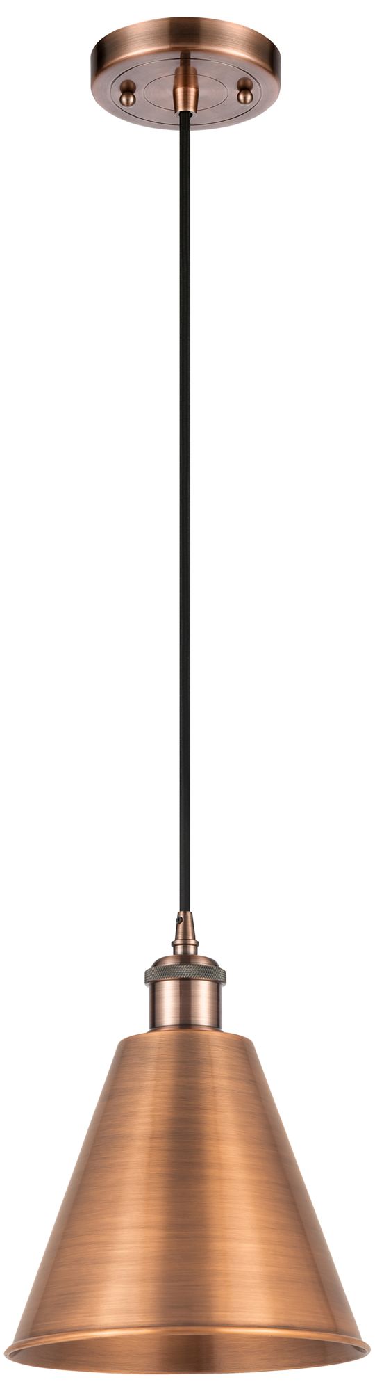 Ballston Cone 8"W Copper Corded Mini Pendant With 8" Shade Black