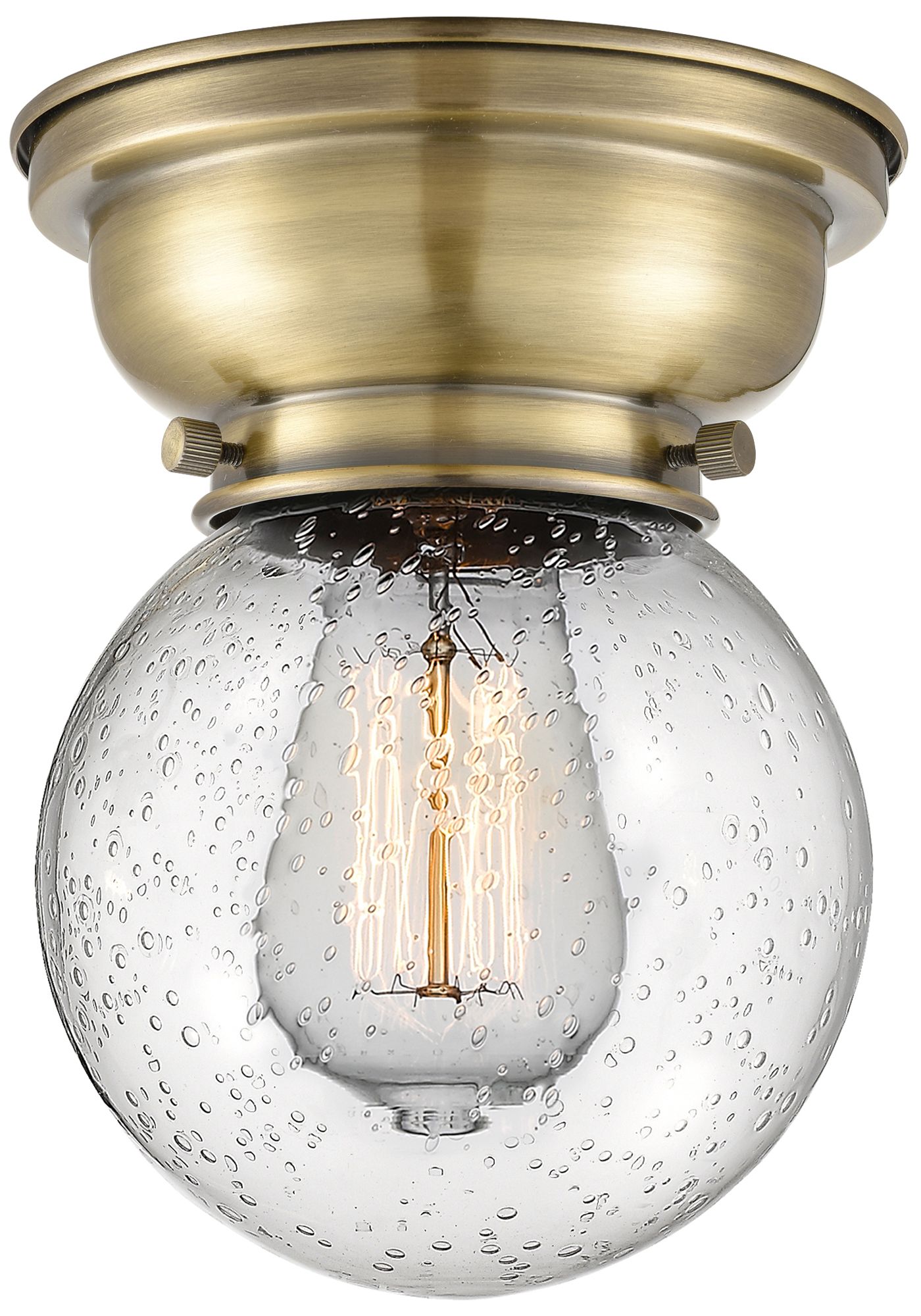 Aditi Beacon 6.25" Wide Antique Brass Flush Mount With Seedy Shade