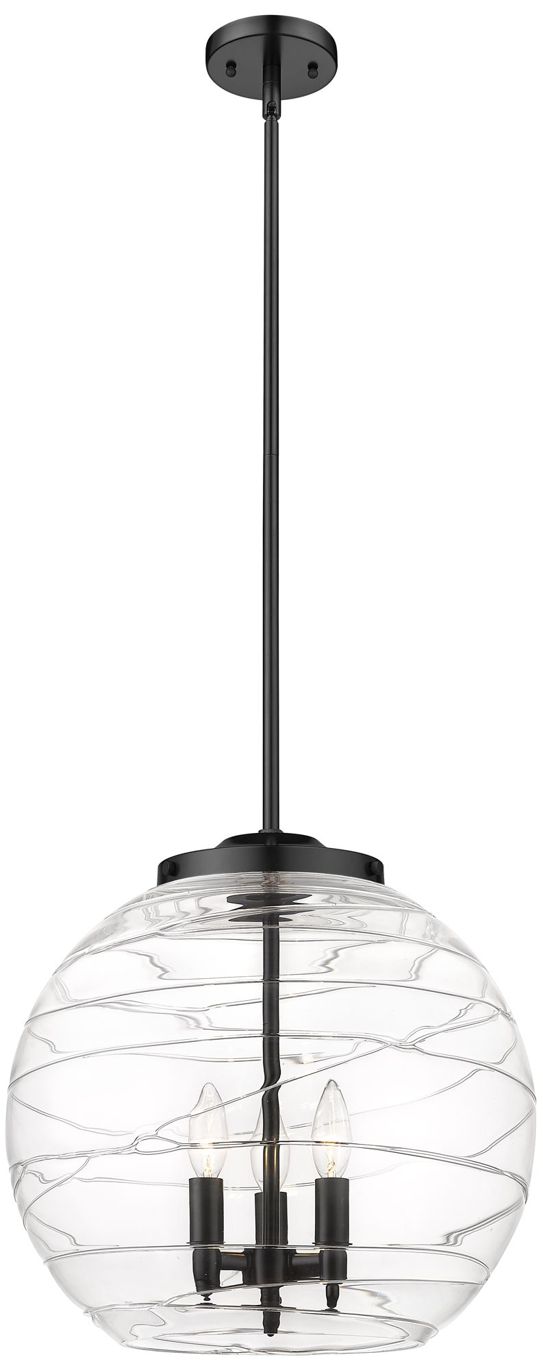 Athens 16" 3-Light Matte Black Pendant w/ Clear Deco Swirl Shade