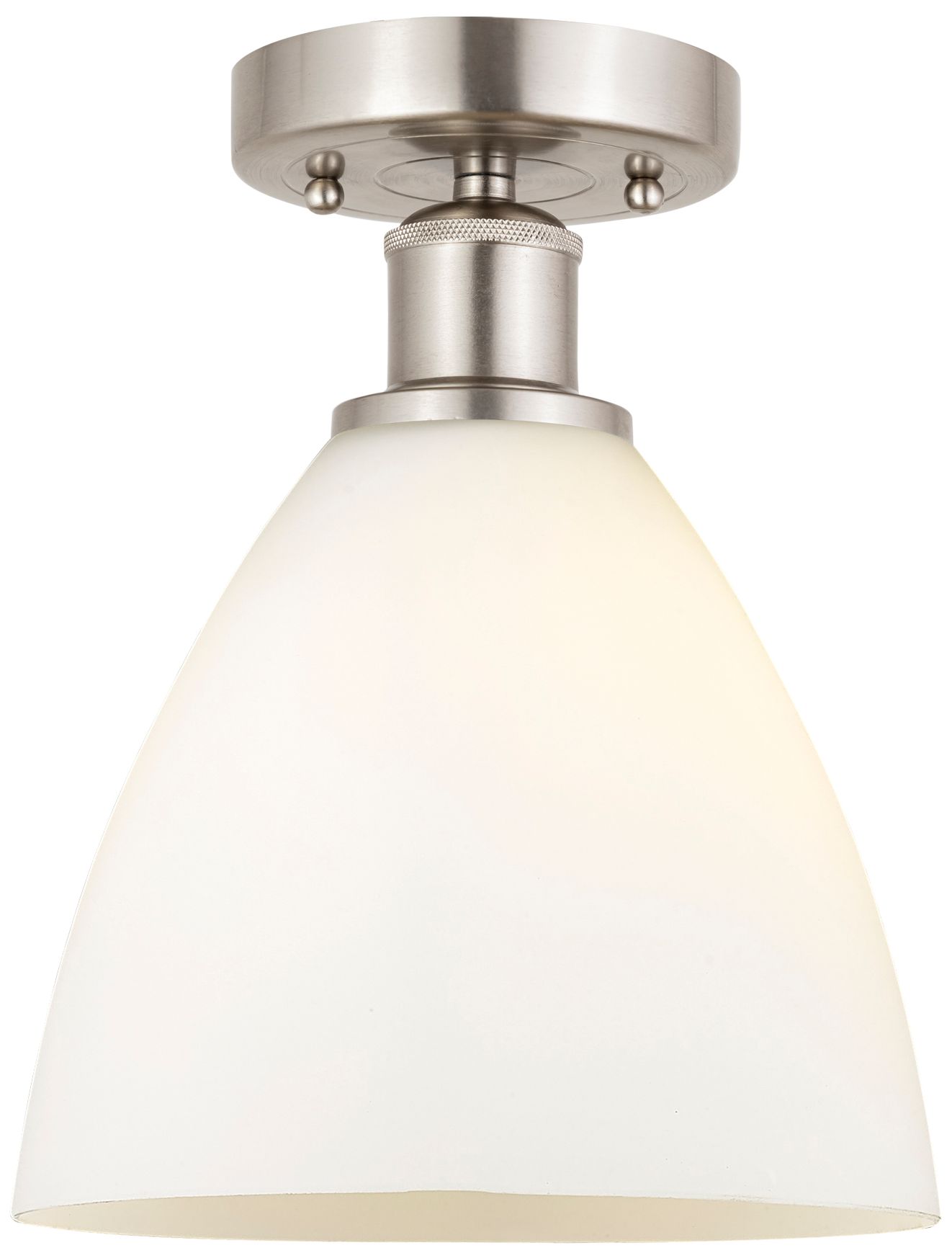 Edison Bristol Glass 8" Semi-Flush Mount - Satin Nickel - Matte White