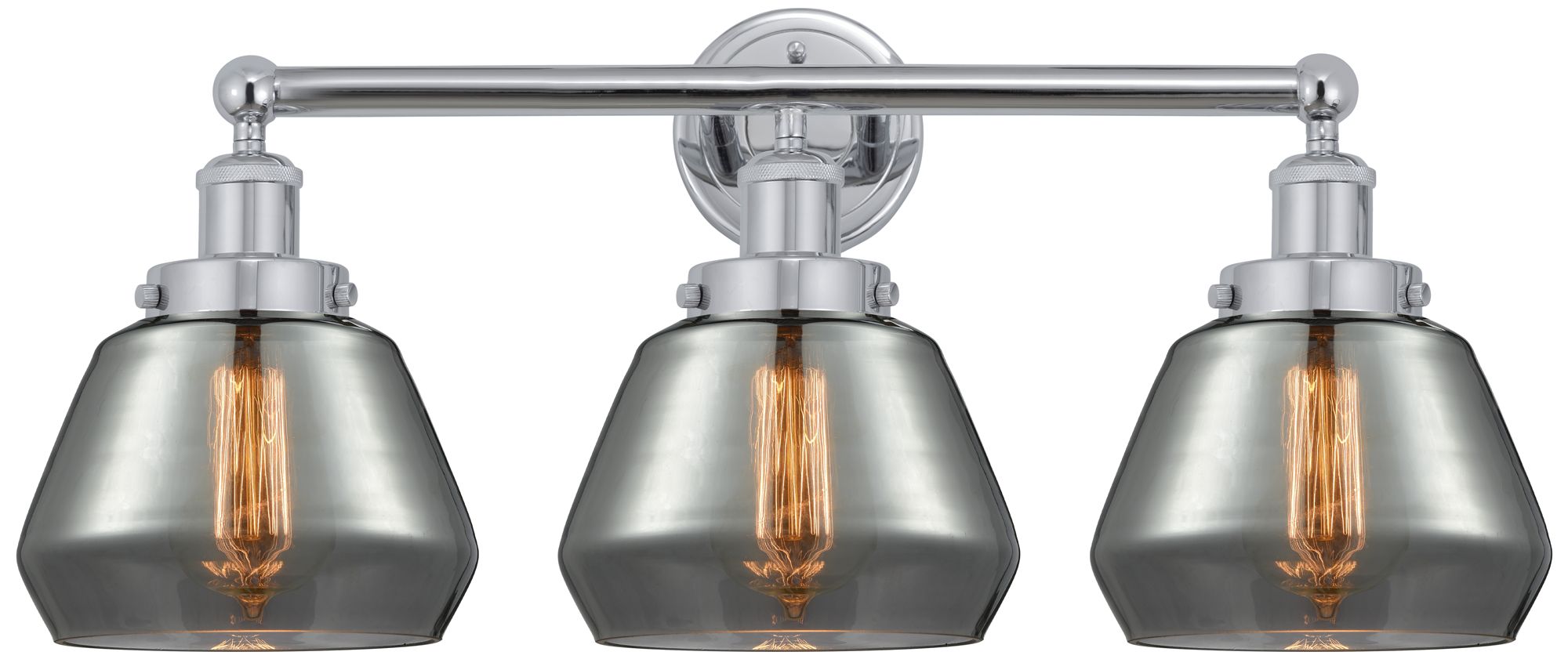 Edison Fulton 25" 3-Light Polished Chrome Bath Light w/ Plated Smoke S