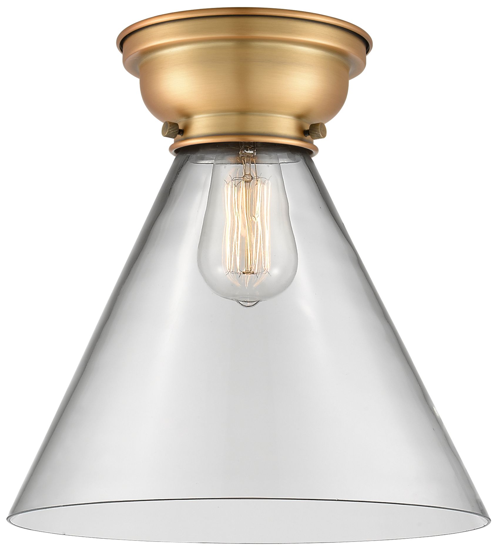 Aditi Cone 12" Flush Mount - Brushed Brass - Clear Shade