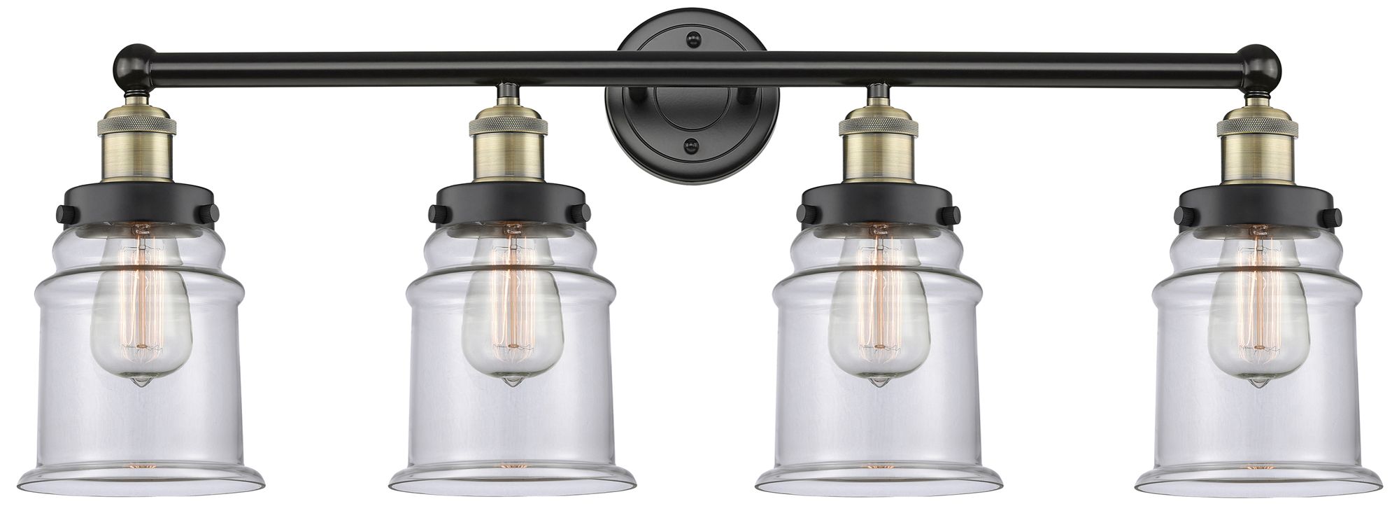 Canton 33" Wide 4 Light Black Brass Bath Vanity Light With Clear Shade