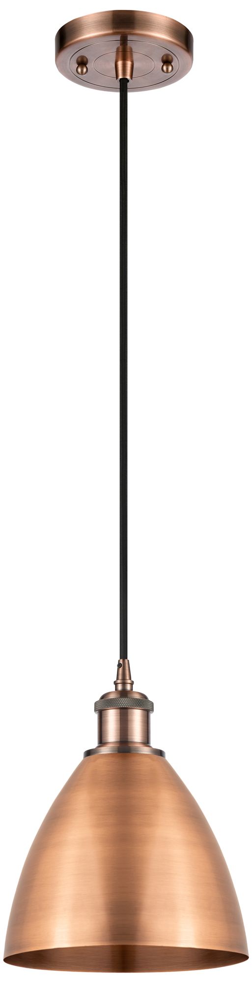 Ballston Metal Bristol 7.5"W Copper Corded Mini Pendant With Black Sha