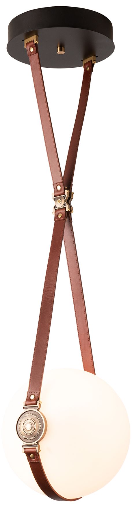 Derby 10.9" Antique Brass Short Branded LED Pendant with Chestnut Stra