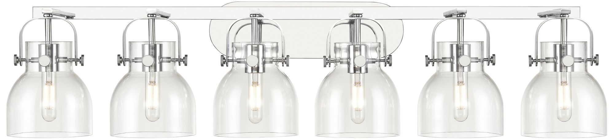 Pilaster II Bell 45.5" Wide 6 Light Chrome Bath Light w/ Clear Shade