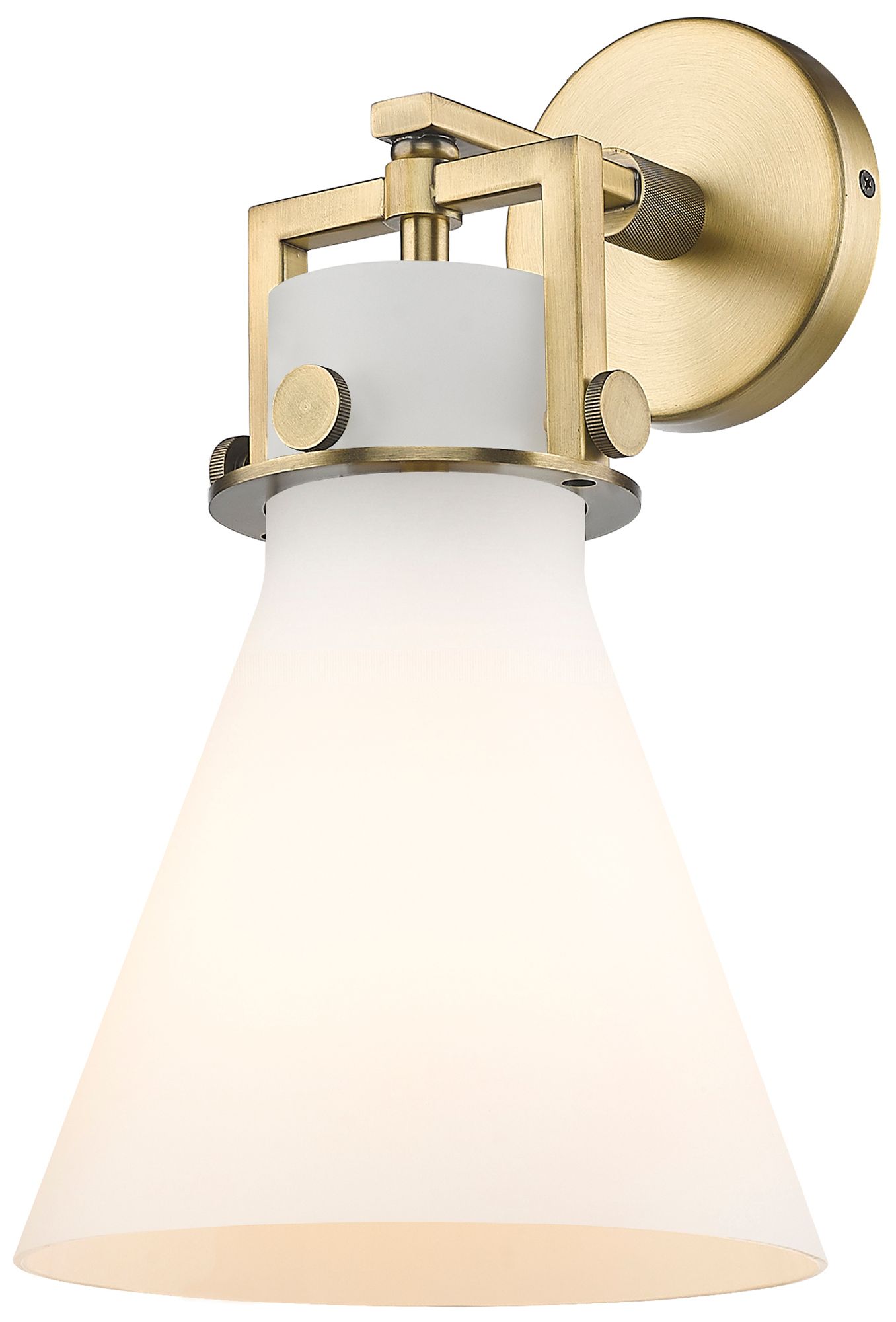 Newton Cone 14" High Brushed Brass Sconce With Matte White Glass Shade