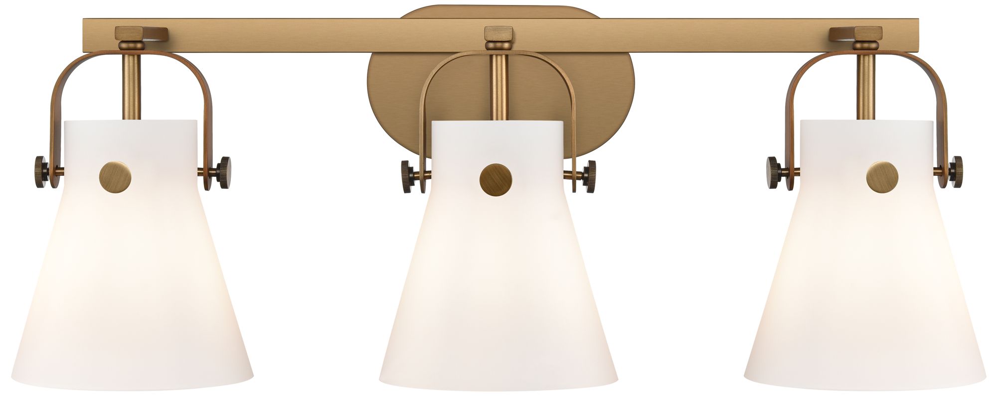 Pilaster II Cone 26.5" Wide 3 Light Brushed Brass Bath Light w/ White